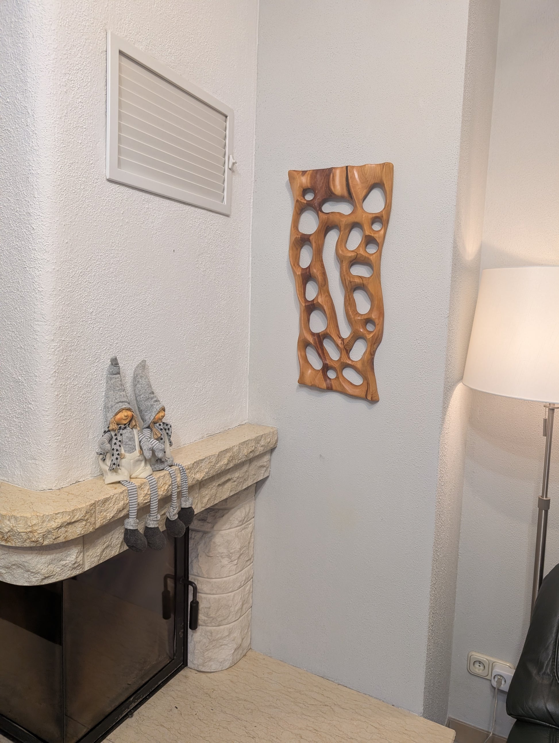 Handgefertigte Wand Skulptur aus Holz. Kirschbaum massiv 60 x 30 x 4, Holzskulptur, Skulpturen aus Holz, Wandskulptur, Wohnzimmer Dekor,