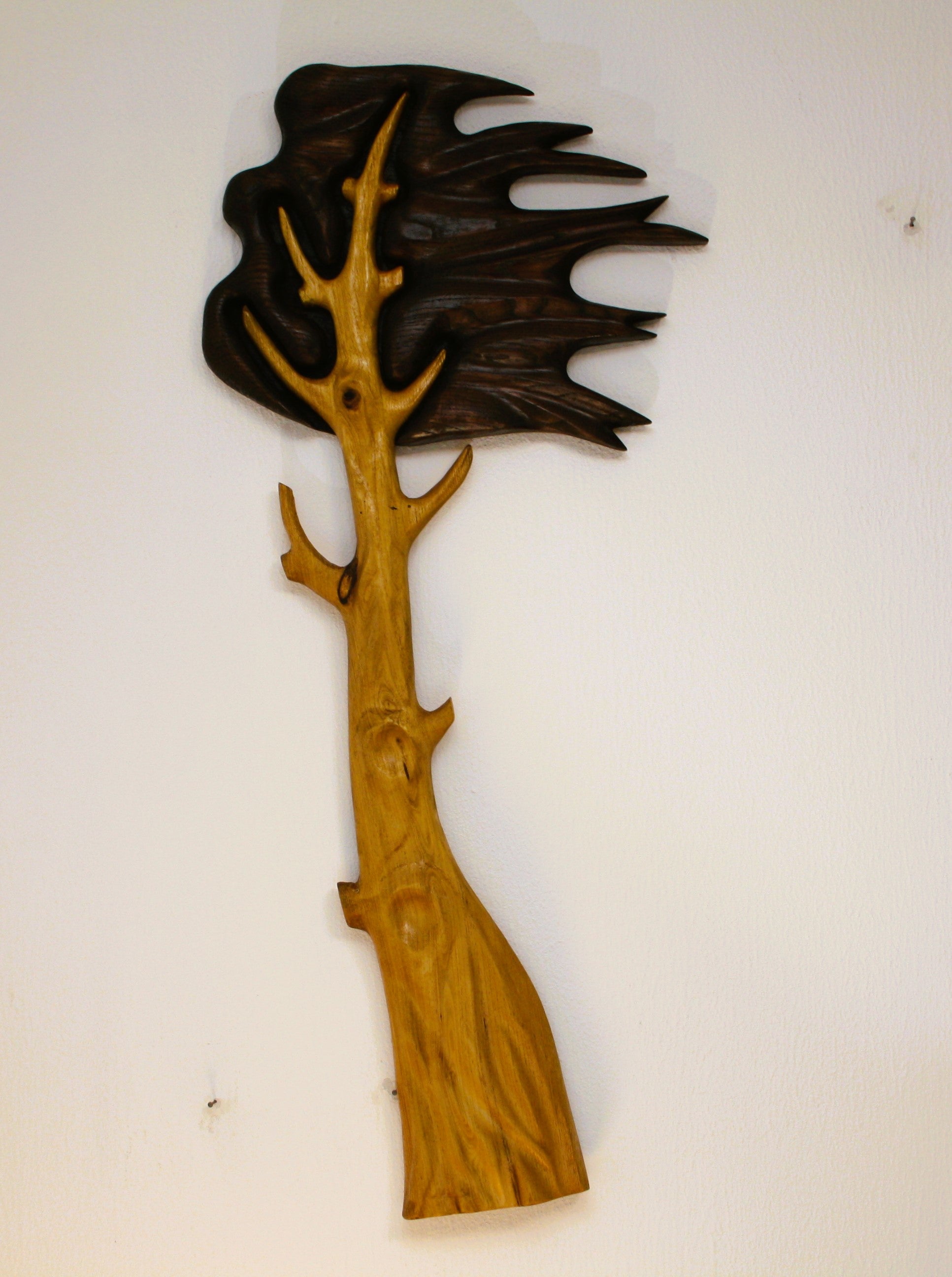Handwerkskunst: Der "Baum im Wind" ehrt das Material, aus dem er geschaffen wurde. Die natürliche Maserung und Struktur des Holzes werden betont und in eine bewegte Form übersetzt. Ein Werk, das die Verbundenheit mit der Natur feiert.